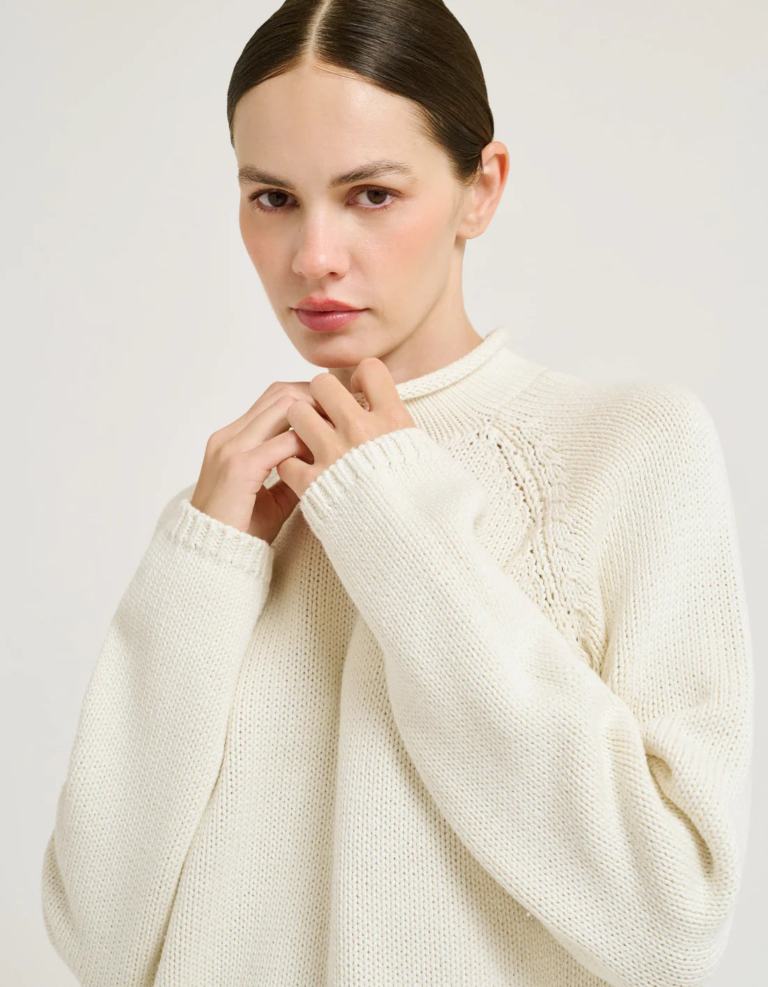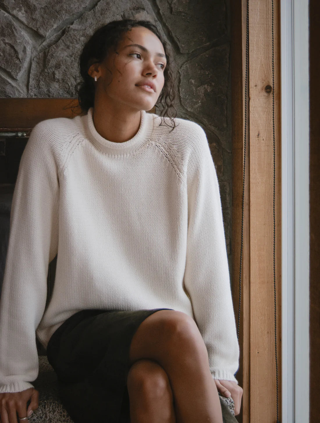 The Boardwalk Sweater channels vintage ease with its roll neck, raglan sleeves, and relaxed fit. Knit from pure cotton, it has that lived-in softness that works everywhere—pulled over a swimsuit on a breezy evening, layered with cutoffs for a beach town morning, or slipped into rotation with denim when summer drifts into fall.