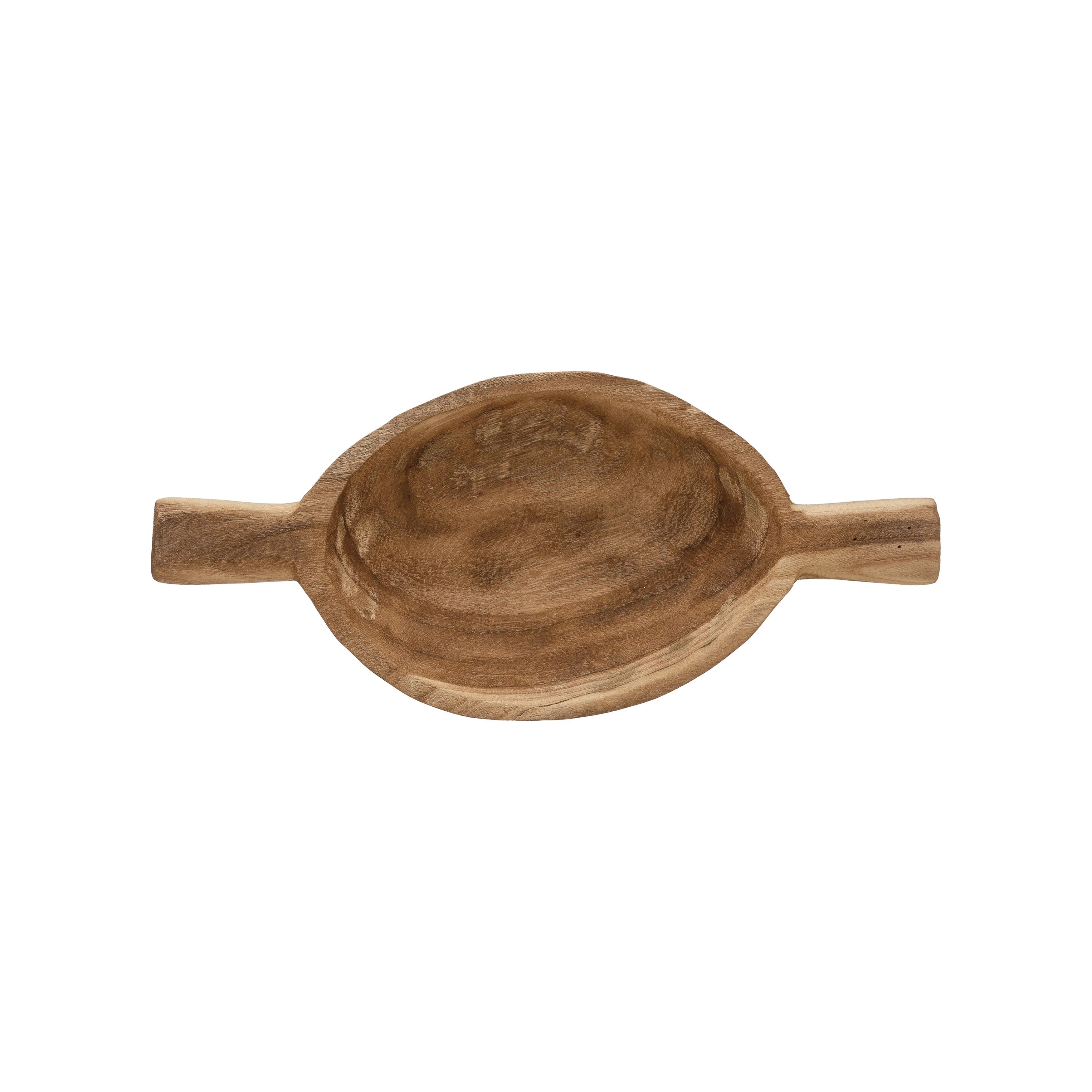 Dimensions: 16-1/2"L x 7-1/2"W x 2-3/4"H Decorative Paulownia Wood Tray w/ Handles, Natural