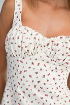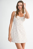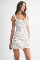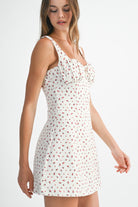Embrace playful elegance in this ditzy floral mini dress, featuring a charming sweetheart neckline and gathered bust detail for a flattering silhouette. The invisible back zipper ensures a seamless look, while the soft lining provides comfort and coverage. Perfect for casual outings or dressed-up occasions, this whimsical piece brings effortless style to any wardrobe.
