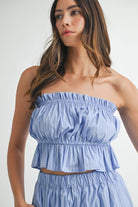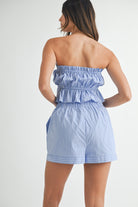 Elevate your casual wardrobe with this eye-catching striped set. The strapless tube top features flattering ruching and a playful peplum detail, while the coordinating shorts offer a comfortable elastic waistband and built-in lining. Perfect for warm weather outings, beach days, or relaxed weekend vibes. This matching two-piece set delivers effortless style with a modern edge.