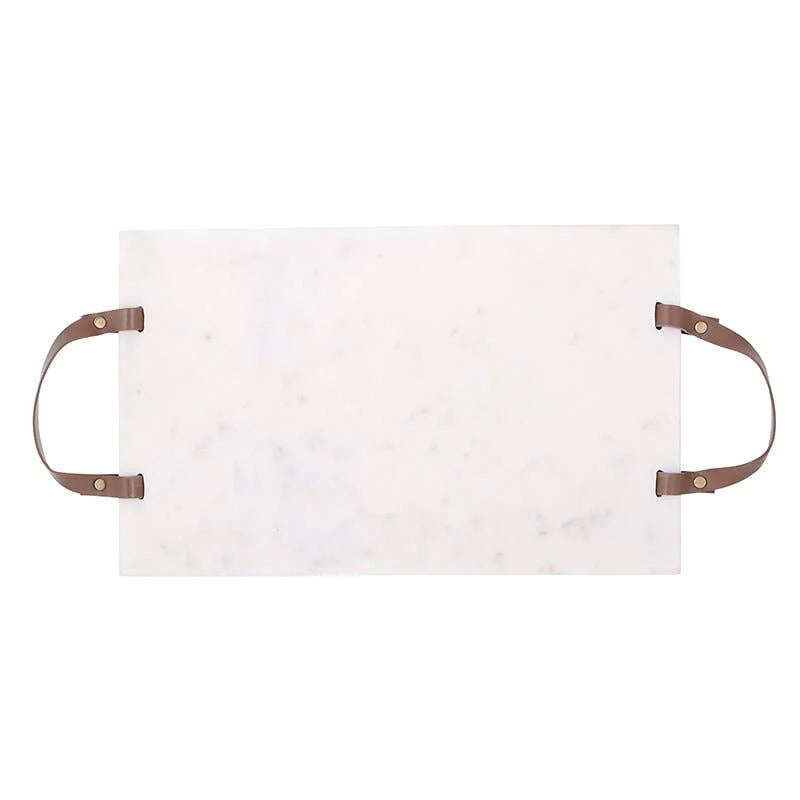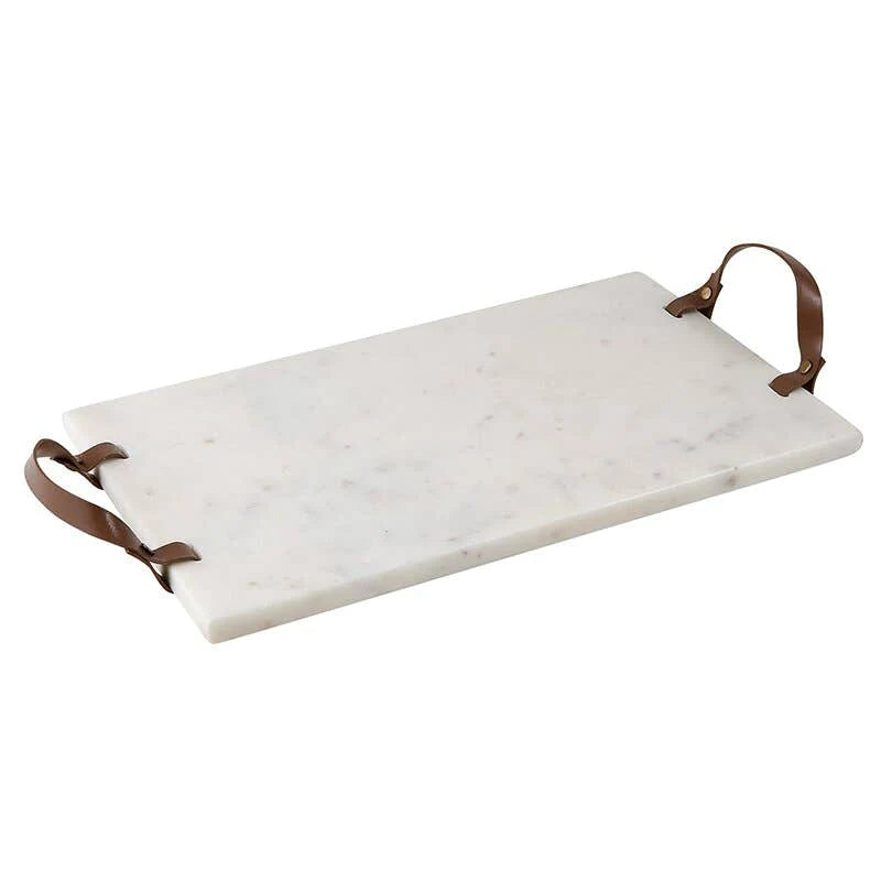 This beautiful serving board is perfect for entertaining guests. Made of white marble and leather, this serving board is perfect for presenting charcuterie and snacks. Its convenient handle makes it easy to move from kitchen to table. Host with style with this functional and stylish serving board.