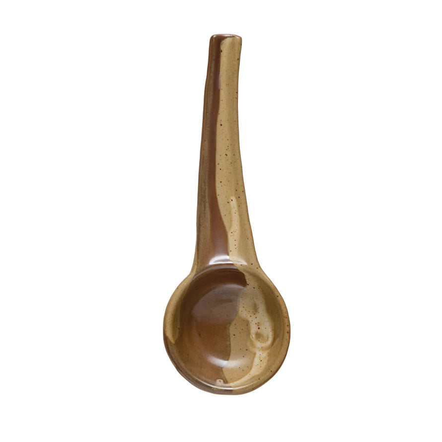 This neutral colored stoneware spoon is perfect for cooking and baking due to its wide and deep bowl, making it ideal for stirring, serving and tasting. It is also comfortable to grip and has a sleek design.