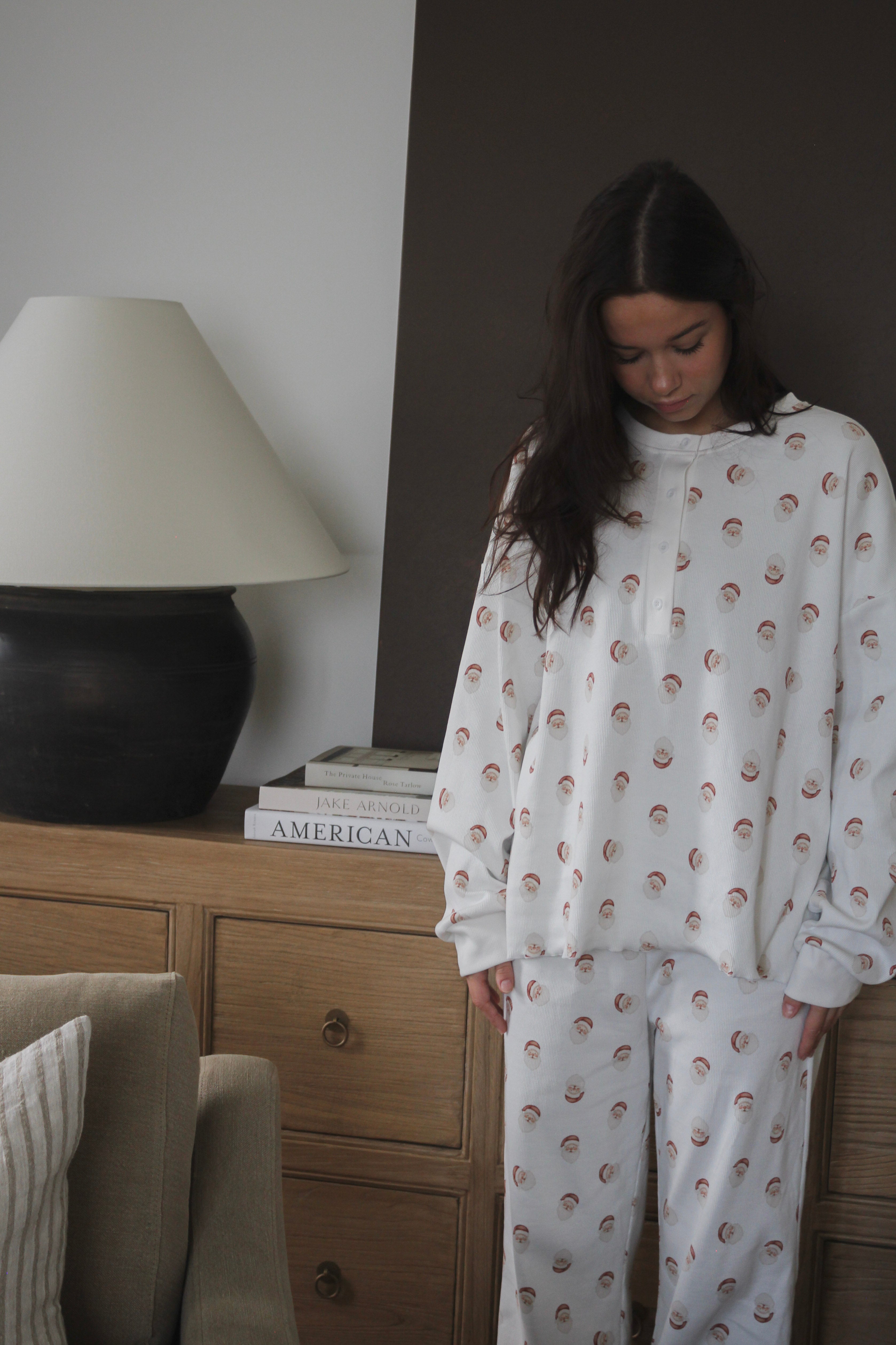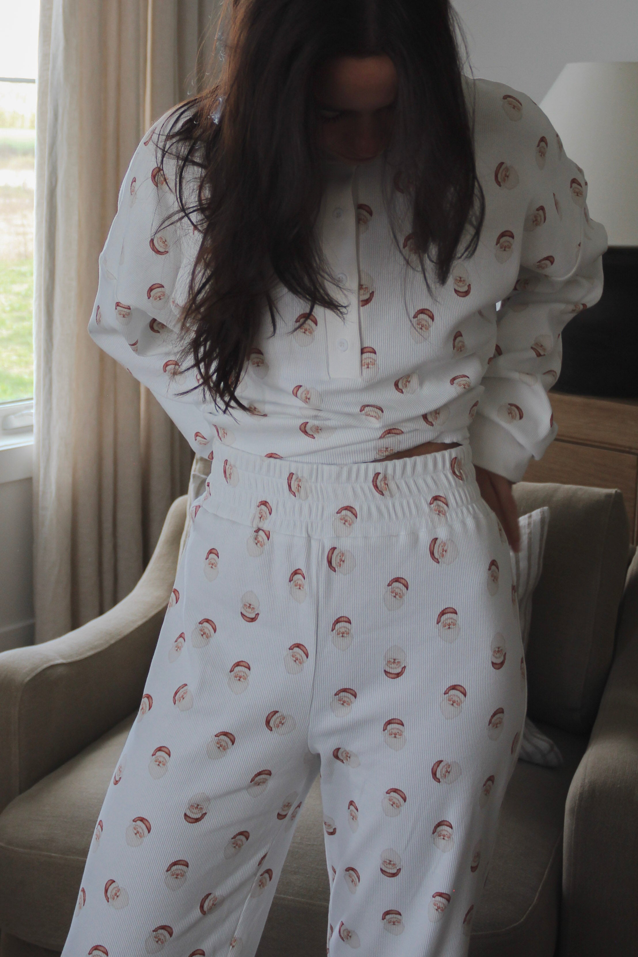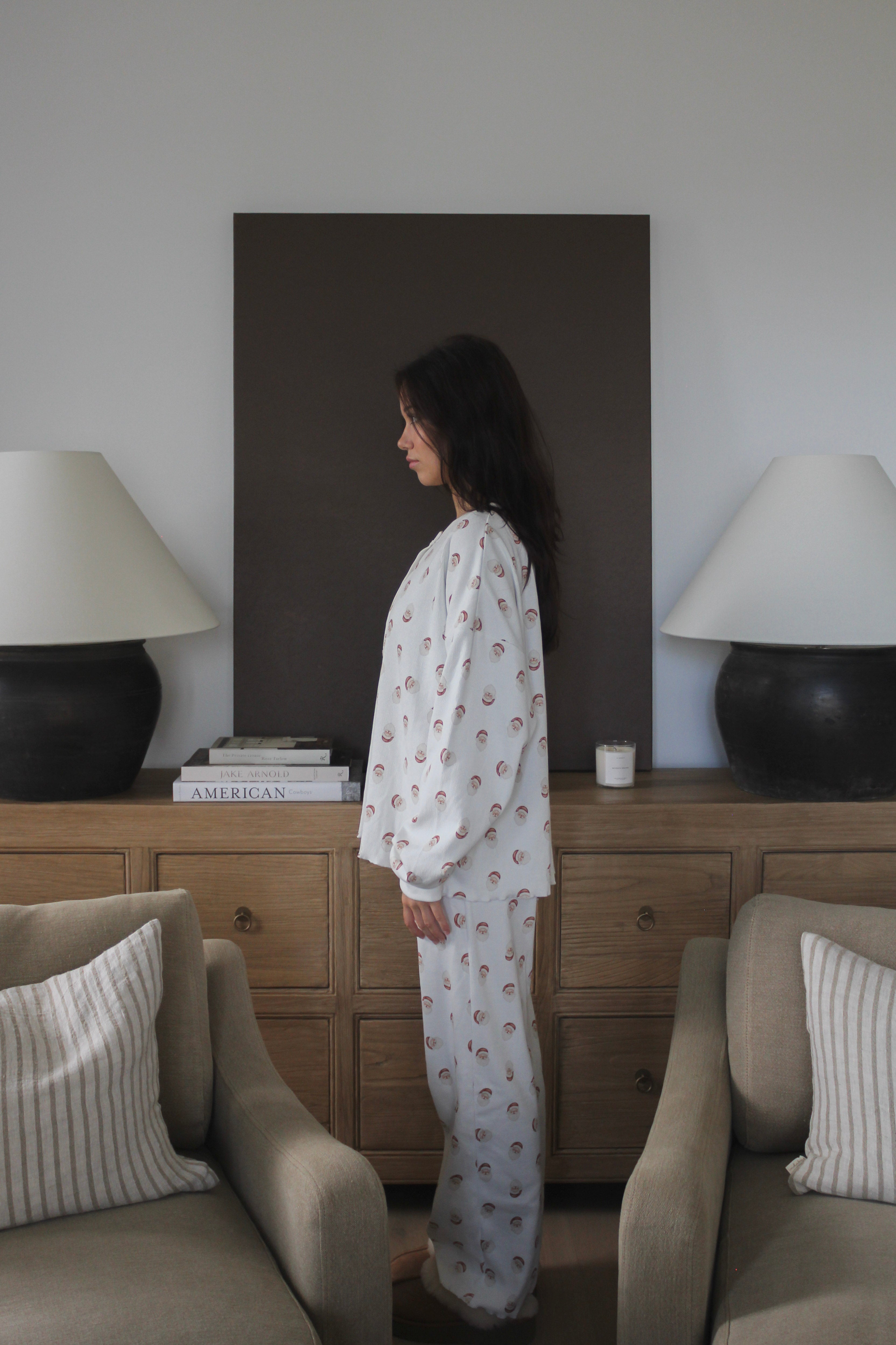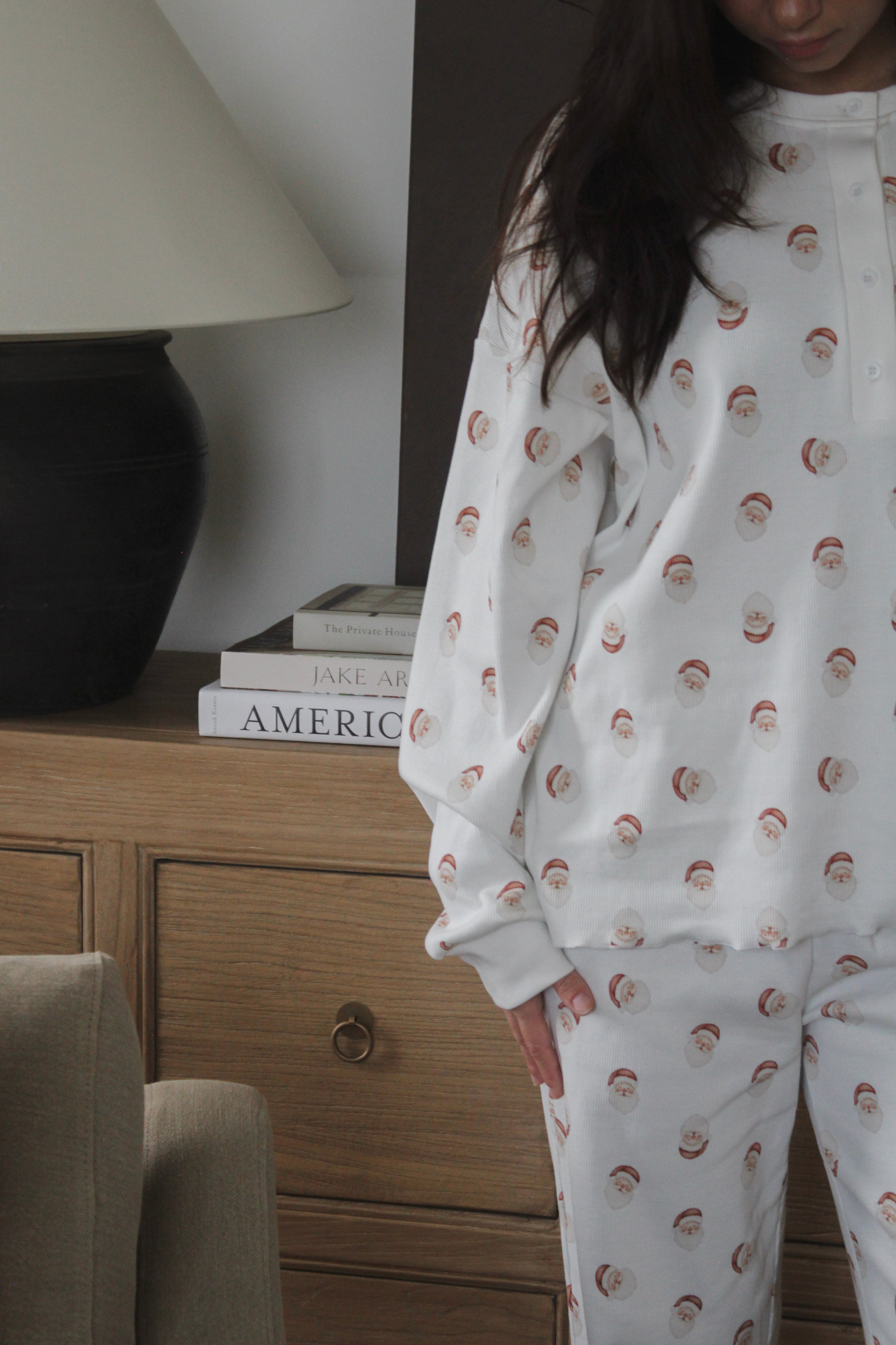 The Heritage Set is made from 100% ribbed knit cotton, combining softness with breathable comfort. It features a vintage Santa print inspired by a heritage mug launching in the shop later this year, adding a touch of festive nostalgia. Designed with colour-matched matte buttons and raw hems, this set delivers refined details and casual ease. Perfect for holiday seasons, these pajamas promise to be a cherished, enduring favourite for cozy celebrations.