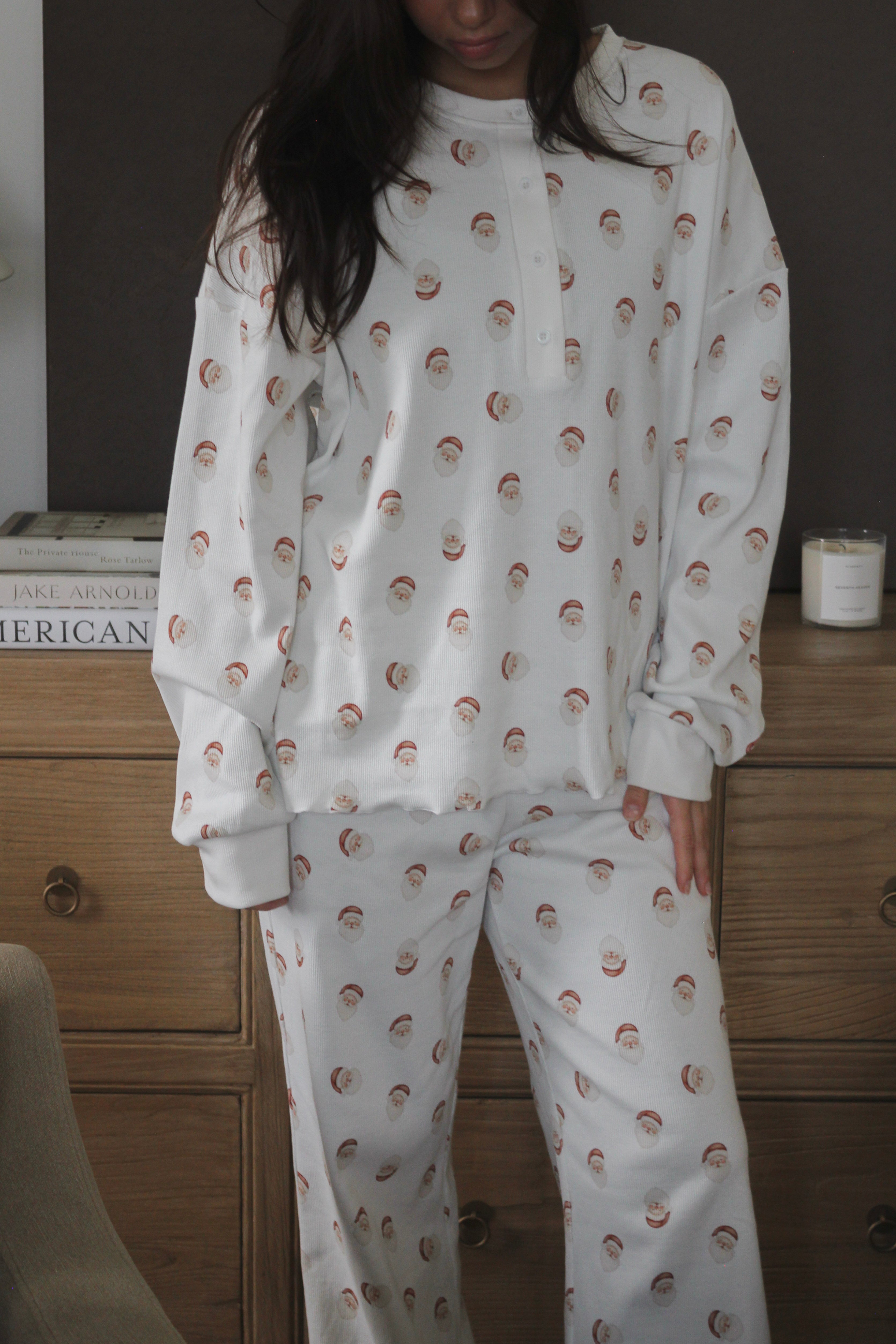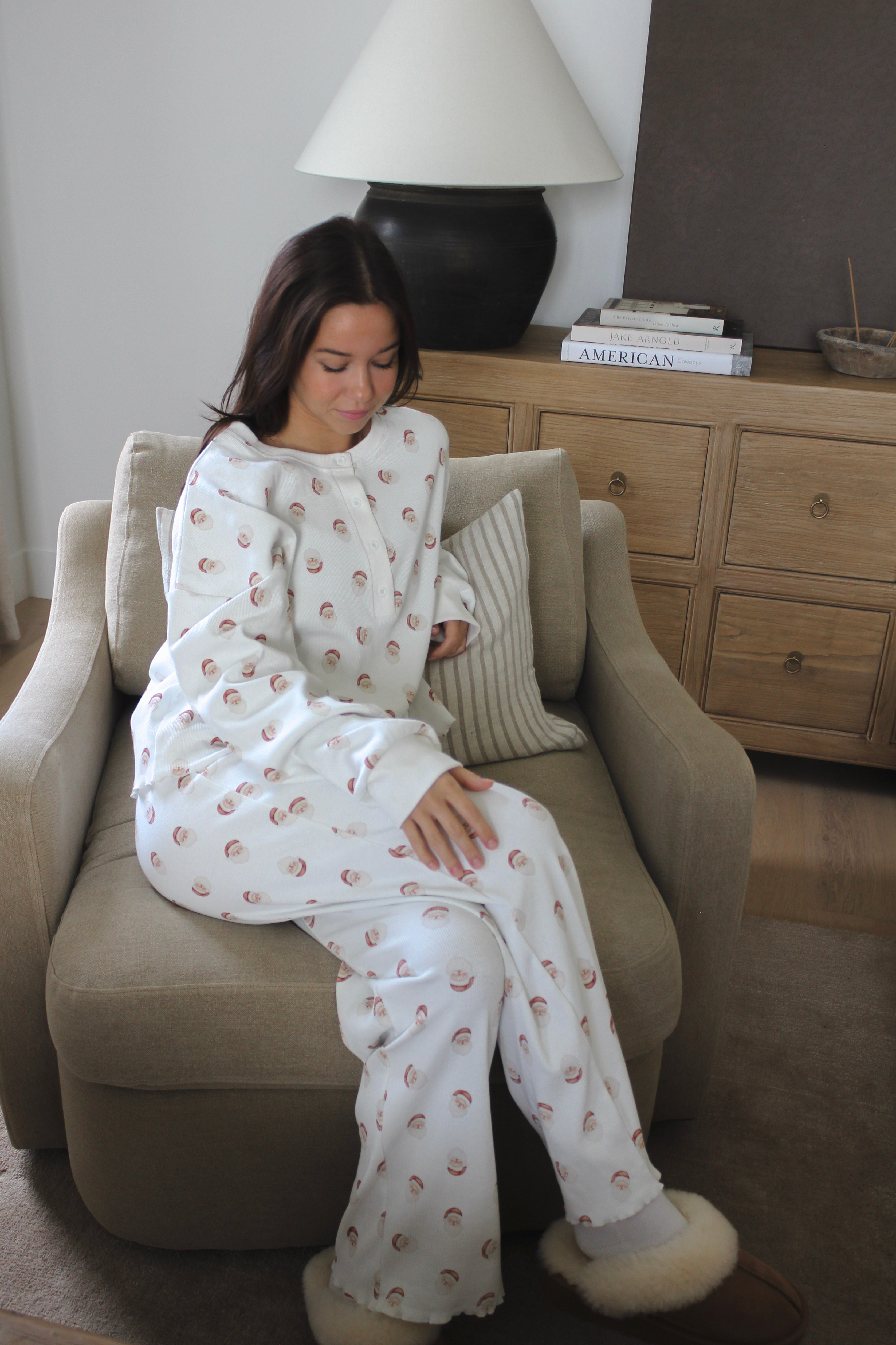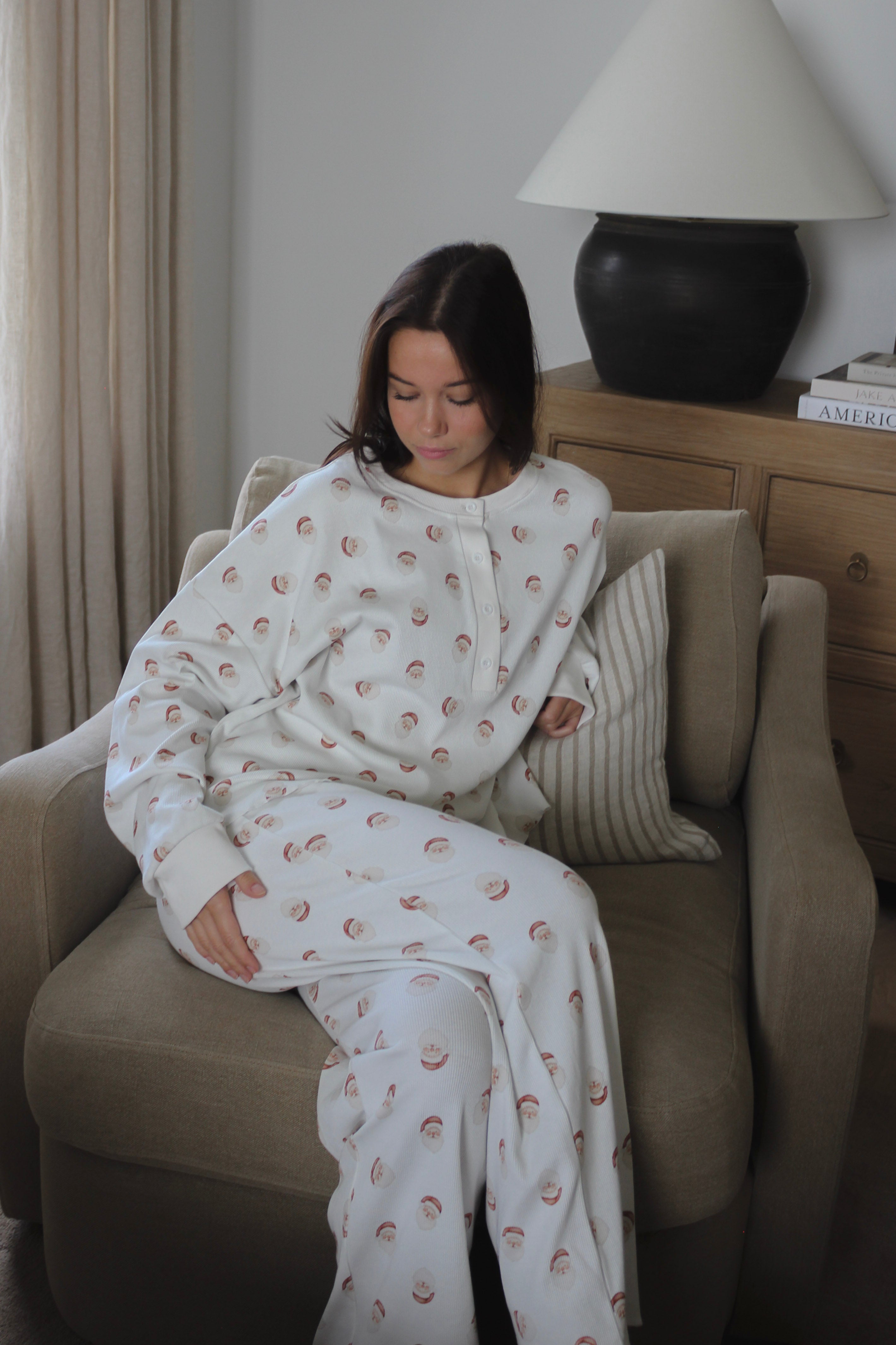 The Heritage Set is made from 100% ribbed knit cotton, combining softness with breathable comfort. It features a vintage Santa print inspired by a heritage mug launching in the shop later this year, adding a touch of festive nostalgia. Designed with colour-matched matte buttons and raw hems, this set delivers refined details and casual ease. Perfect for holiday seasons, these pajamas promise to be a cherished, enduring favourite for cozy celebrations.