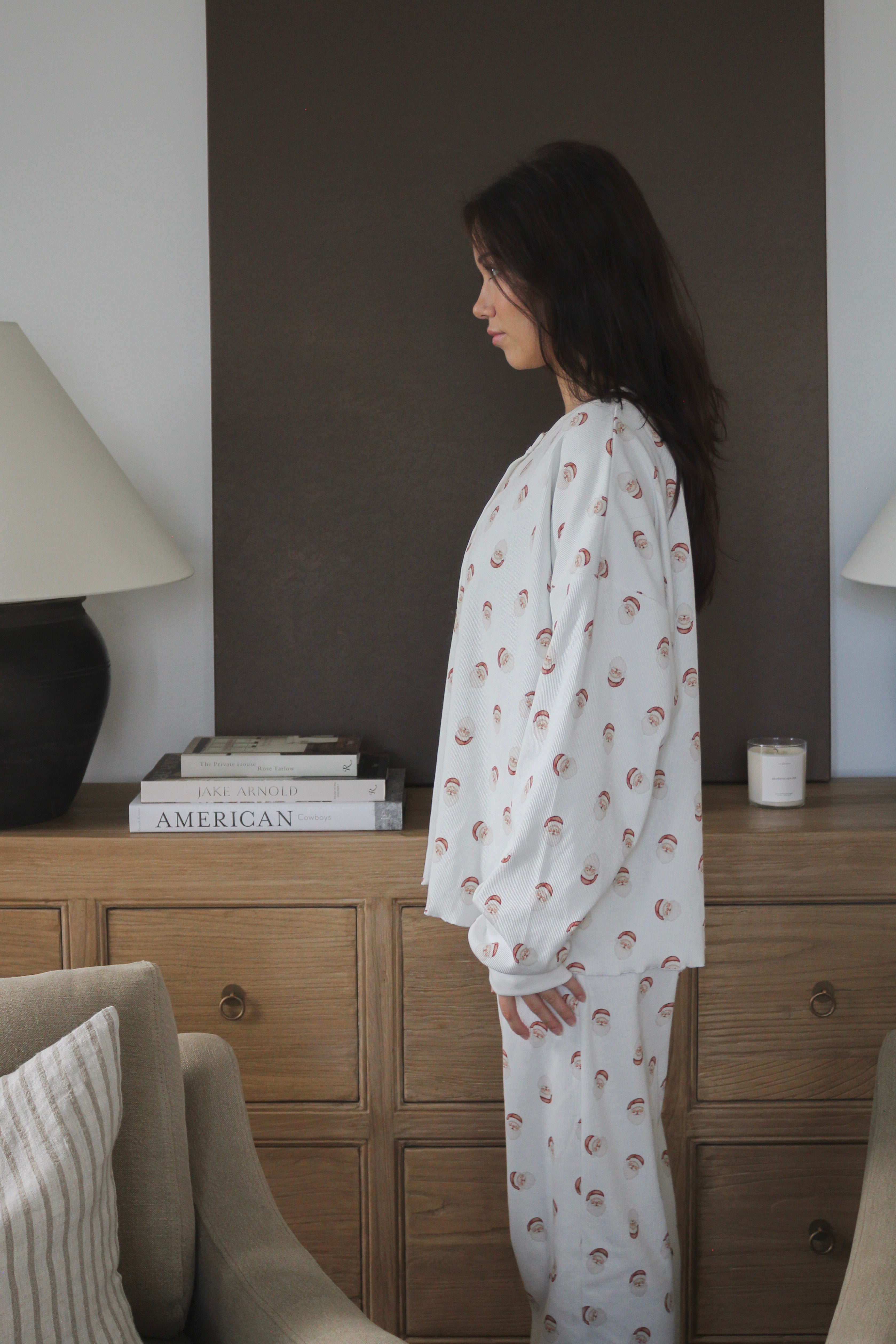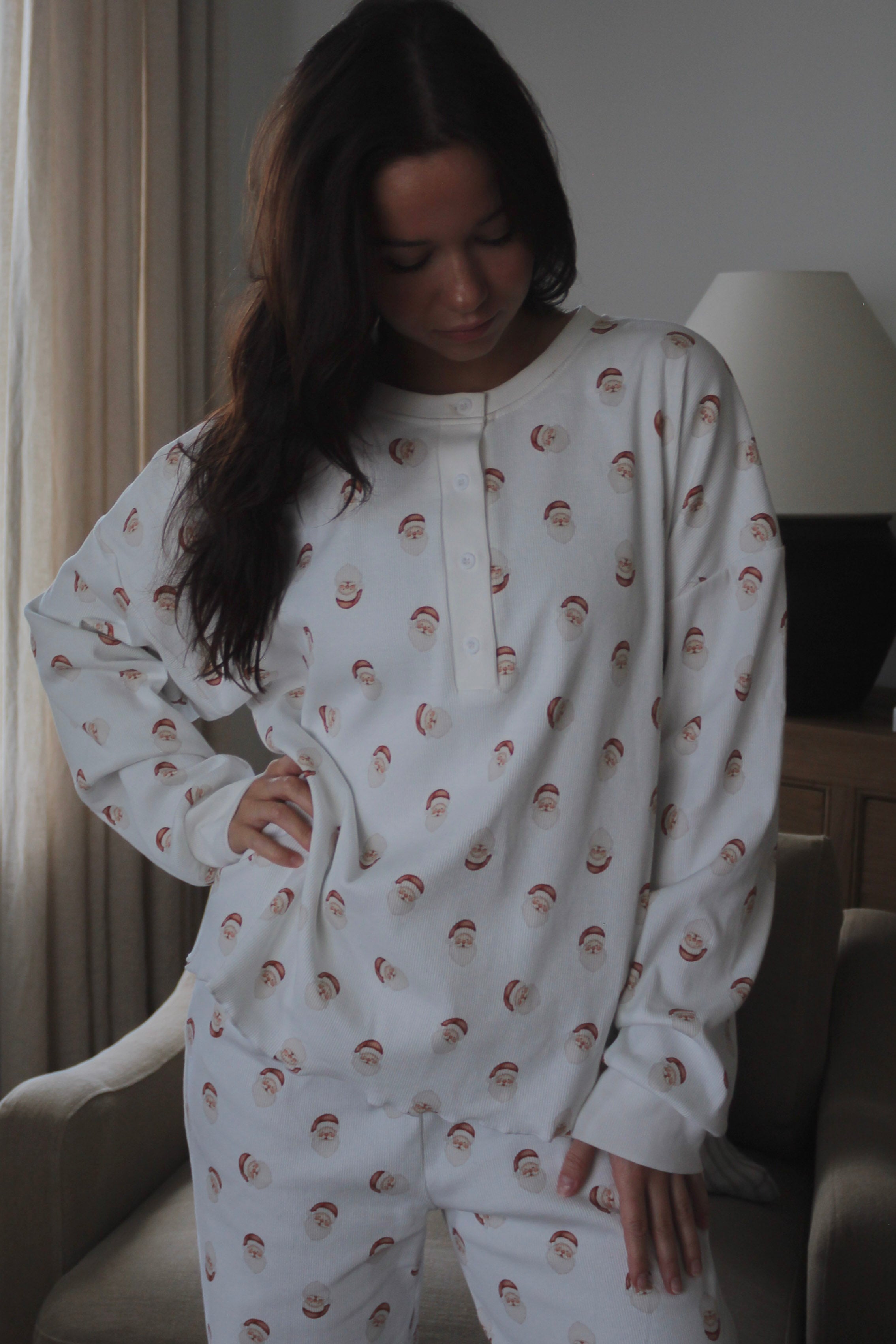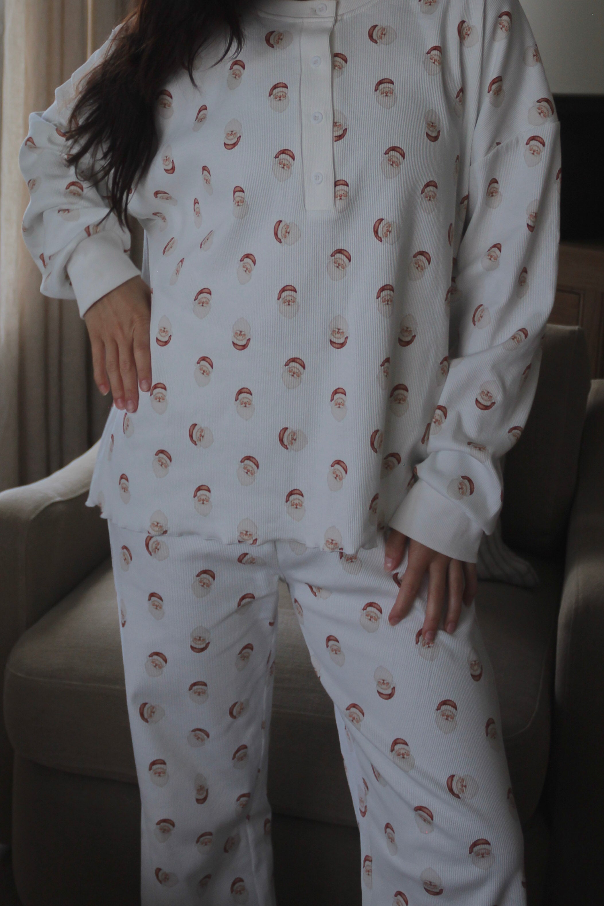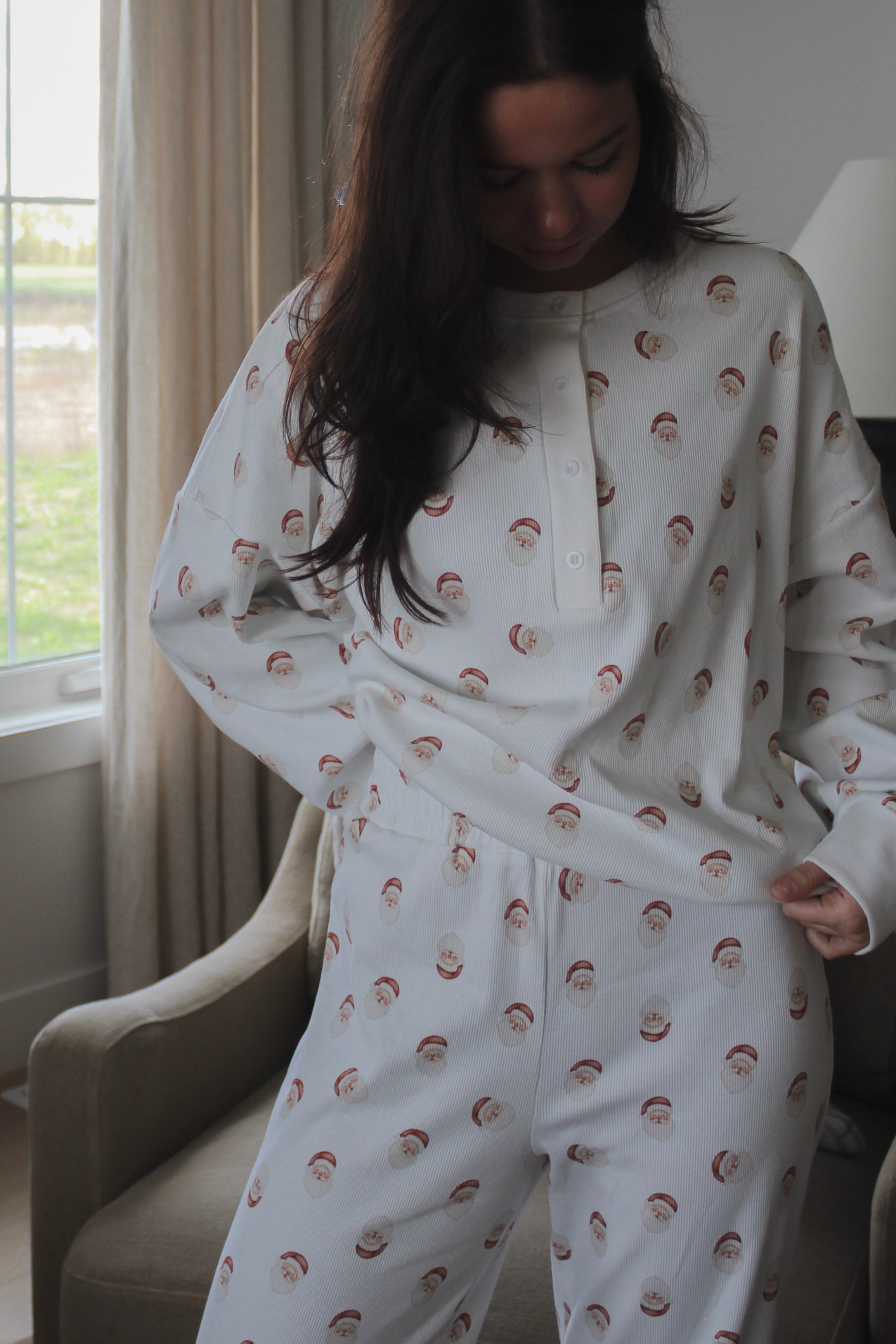 The Heritage Set is made from 100% ribbed knit cotton, combining softness with breathable comfort. It features a vintage Santa print inspired by a heritage mug launching in the shop later this year, adding a touch of festive nostalgia. Designed with colour-matched matte buttons and raw hems, this set delivers refined details and casual ease. Perfect for holiday seasons, these pajamas promise to be a cherished, enduring favourite for cozy celebrations.